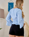 Blusa para mujer con escote en V y boleros, silueta regular, elaborada en Lino.