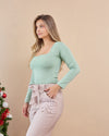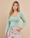 Body para mujer manga larga con escote cuadrado, silueta regular, elaborado en polilicra.