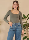 Body Escote Cuadrado Manga Larga Verde Militar