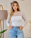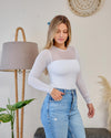 Body para Mujer con transparenica, cuello redondo y manga larga, silueta regular, elaborado en mallatex.