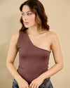 Body para mujer con escote asimétrico y tira ajustable, silueta regular, elaborado en polilicra.