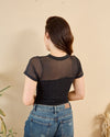 Body para mujer con brillos y manga corta, silueta regular, elaborado en mallatex y polilicra.