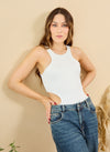Body para mujer con escote redondo y asimétria en cintura, silueta regular, elaborado en polilicra.