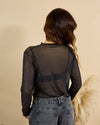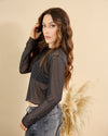 Buzo para mujer con cuello redondo, silueta regular, elaborado en mallatex y polilicra.