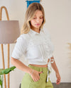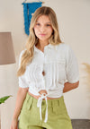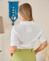 Camisa para mujer con cuello amarre delantero, silueta estándar, elaborada en Lino.