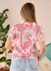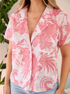 Camisa Manga Corta con Cuello Smoking Flores Rosado