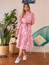 Vestido para mujer tipo midi con manga puff, silueta regular, elaborado en lino.